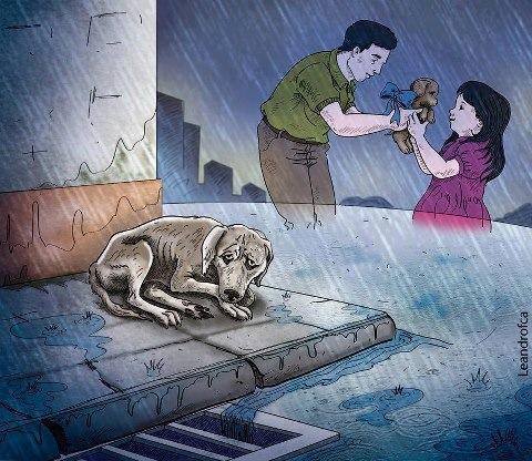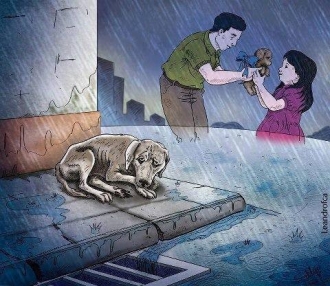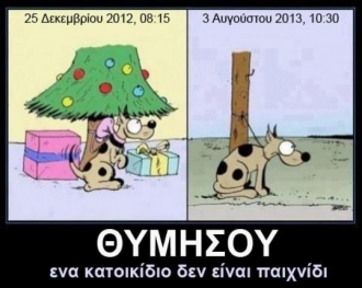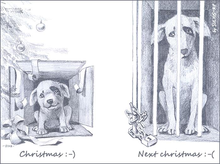 Τρία σκίτσα, που περιγράφουν χωρίς λόγια, το που καταλήγουν συνήθως τα ζώα, τα οποία αντιμετωπίζονται ως δώρα και όχι ως έμψυχα πλάσματα...