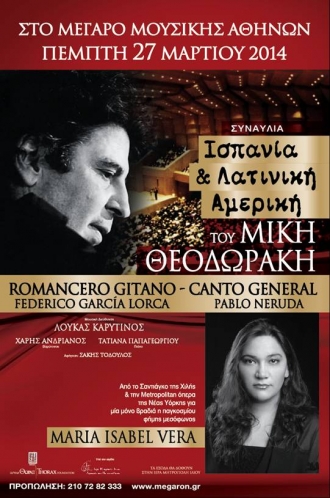 CANTO GENERAL του Pablo Neruda & ROMANCERO GITANO του Federico Garthia Lorca στο ΜΕΓΑΡΟ ΜΟΥΣΙΚΗΣ ΑΘΗΝΩΝ