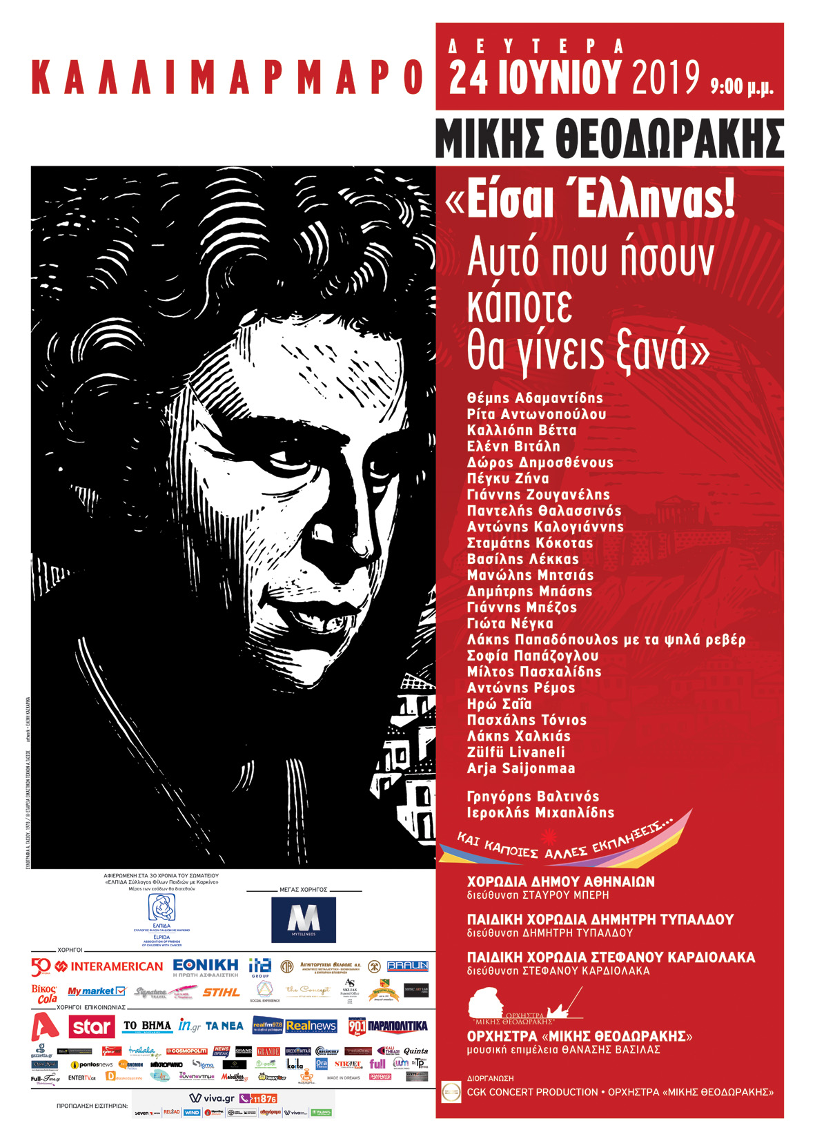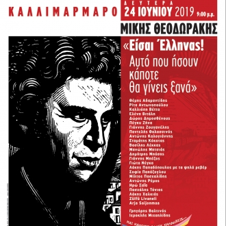 Μεγάλη Συναυλία - αφιέρωμα στον Μίκη Θεοδωράκη θα πραγματοποιηθεί το βράδυ της Δευτέρας 24 Ιουνίου 2019, στις 9:00 μ.μ., στο Καλλιμάρμαρο - Παναθηναϊκό Στάδιο από την Ορχήστρα «Μίκης Θεοδωράκης», ορχήστρα του συνθέτη.