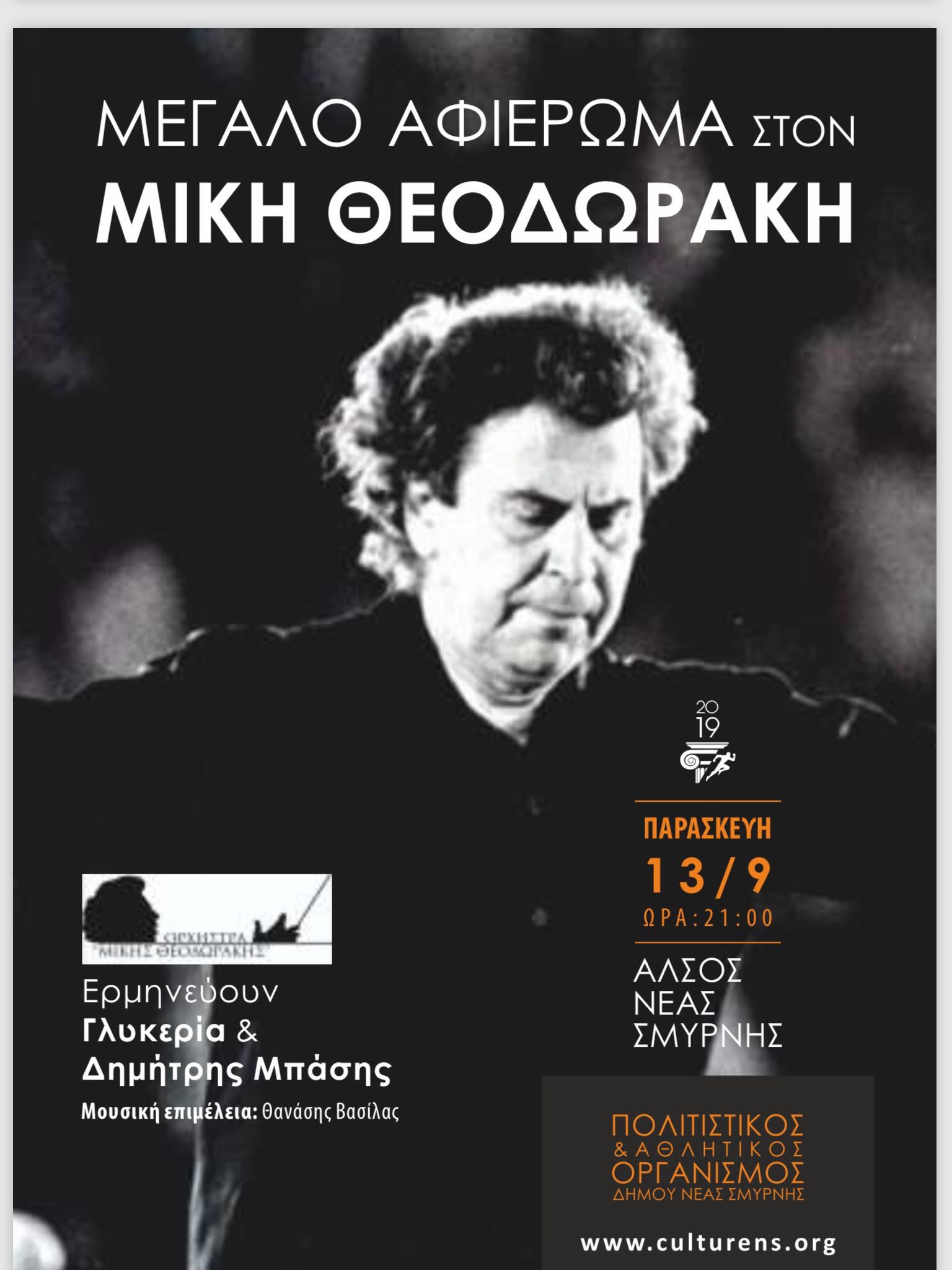 Η Λαϊκή Ορχήστρα «Μίκης Θεοδωράκης» μαζί με την Γλυκερία και τον Δημήτρη Μπάση παρουσιάζουν την Παρασκευή 13 Σεπτεμβρίου μια συναυλία αφιερωμένη στα πιο αγαπημένα λαϊκά, ζεϊμπέκικα αλλά και λυρικά τραγούδια του Μίκη Θεοδωράκη.