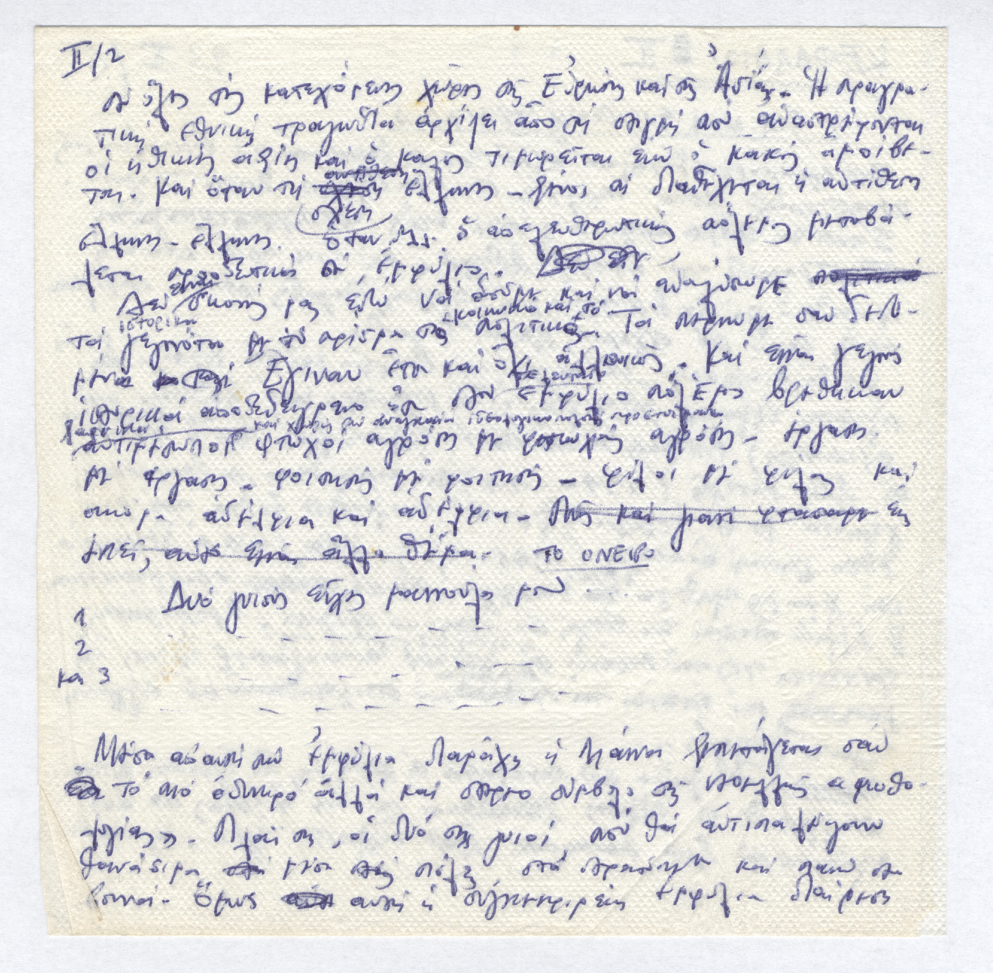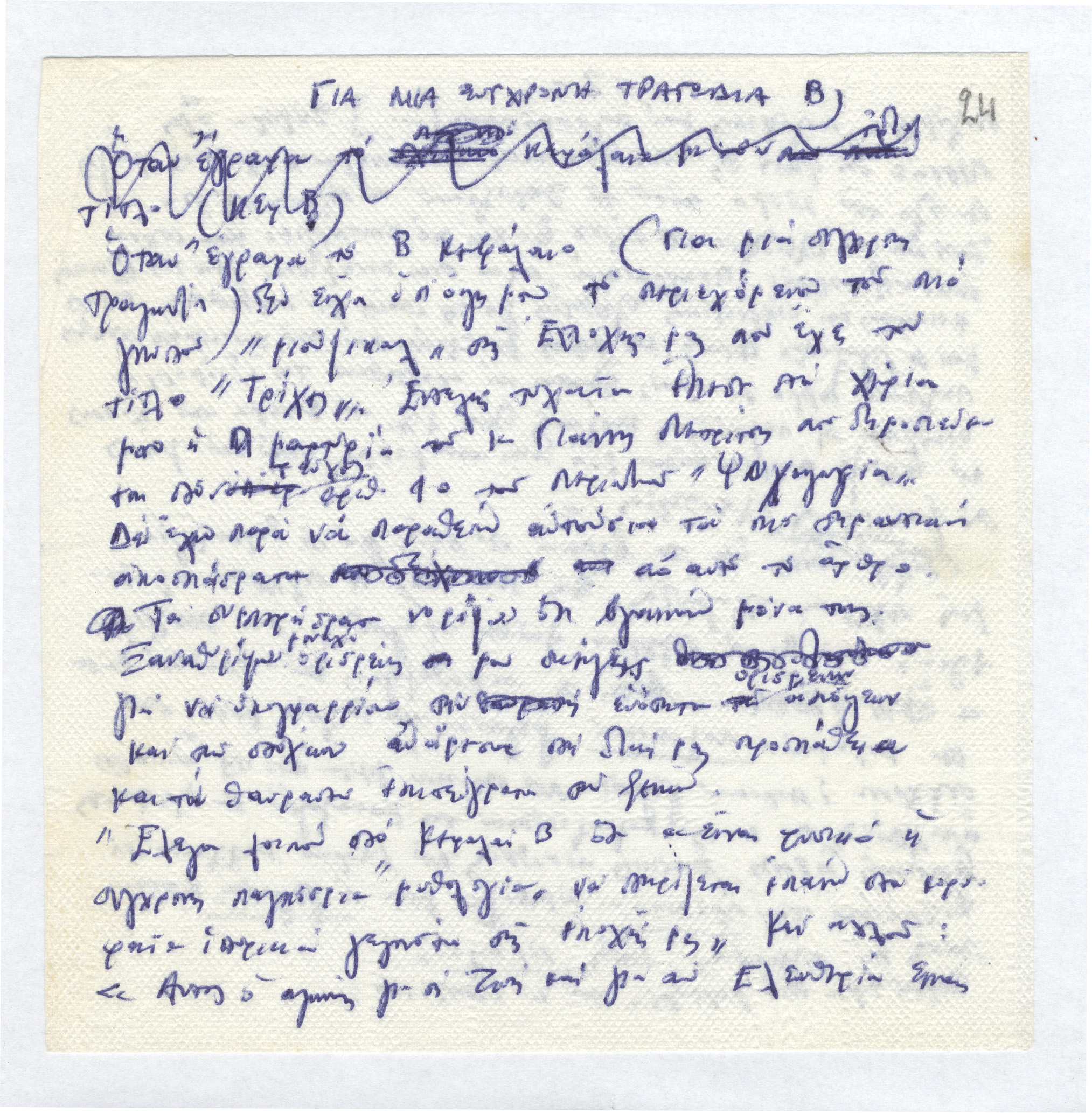 Για μια σύγχρονη τραγωδία 12.02.2014 Ανάλυση του έργου "Το τραγούδι του νεκρού αδελφού" γραμμένη πάνω σε χαρτοπετσέτες