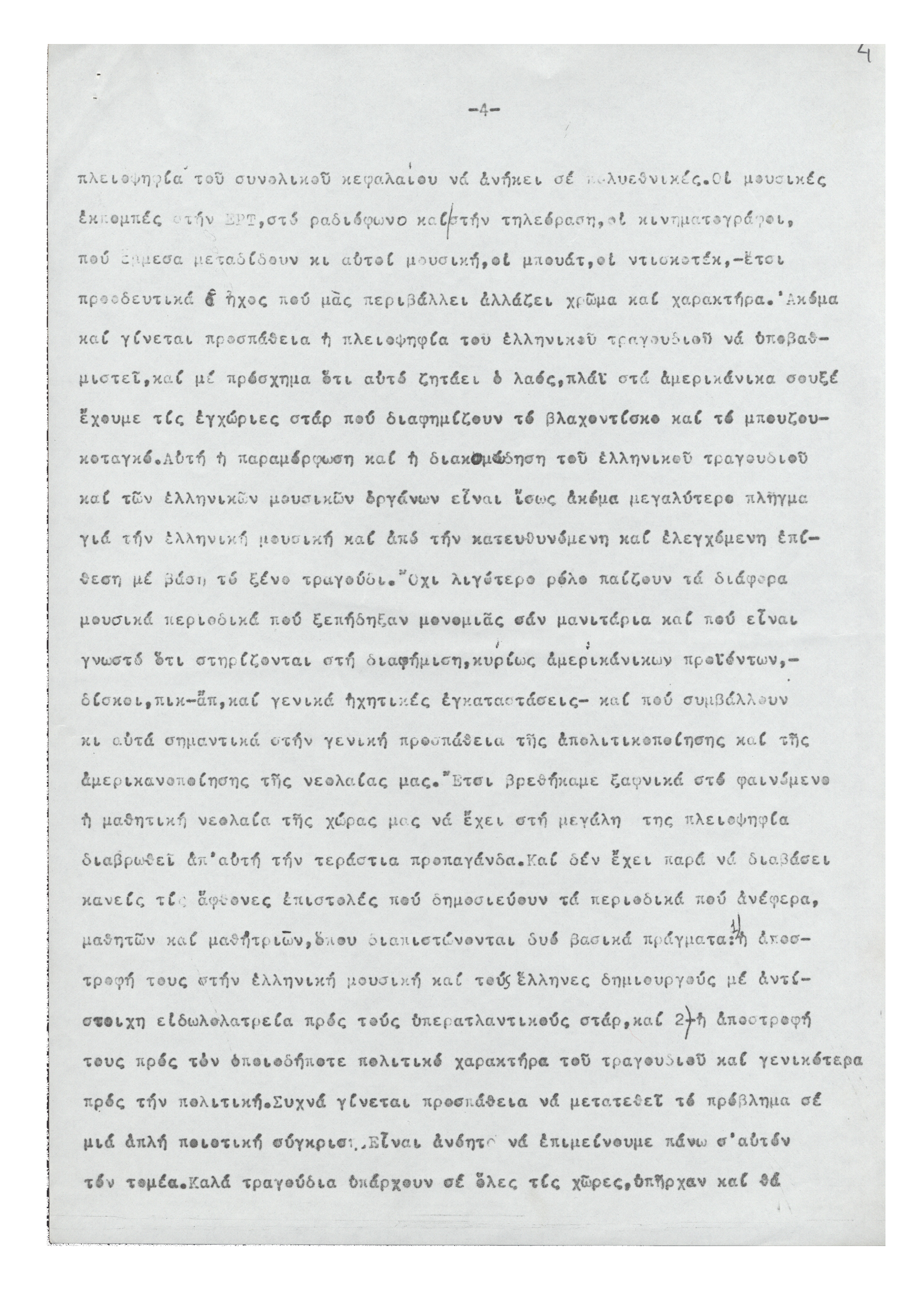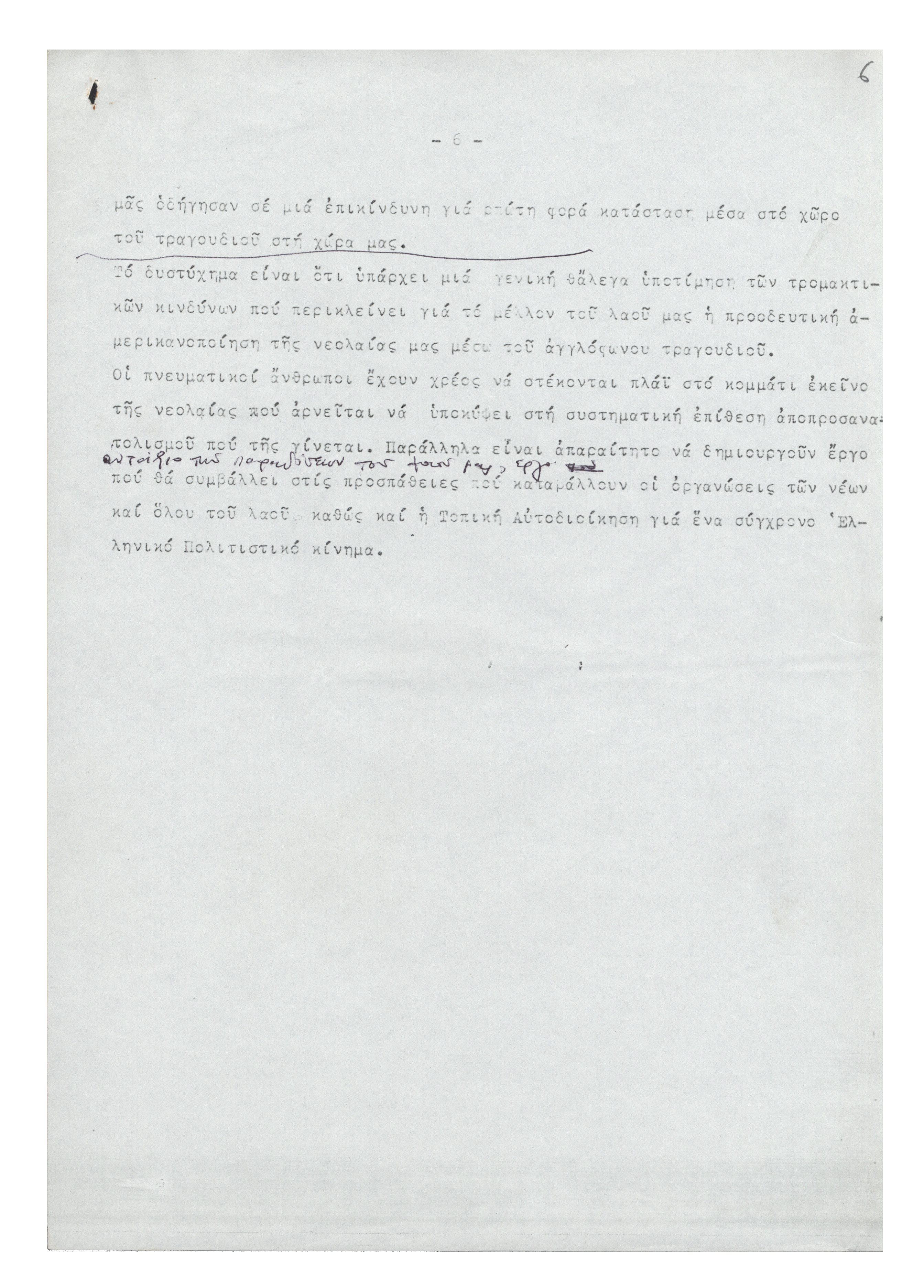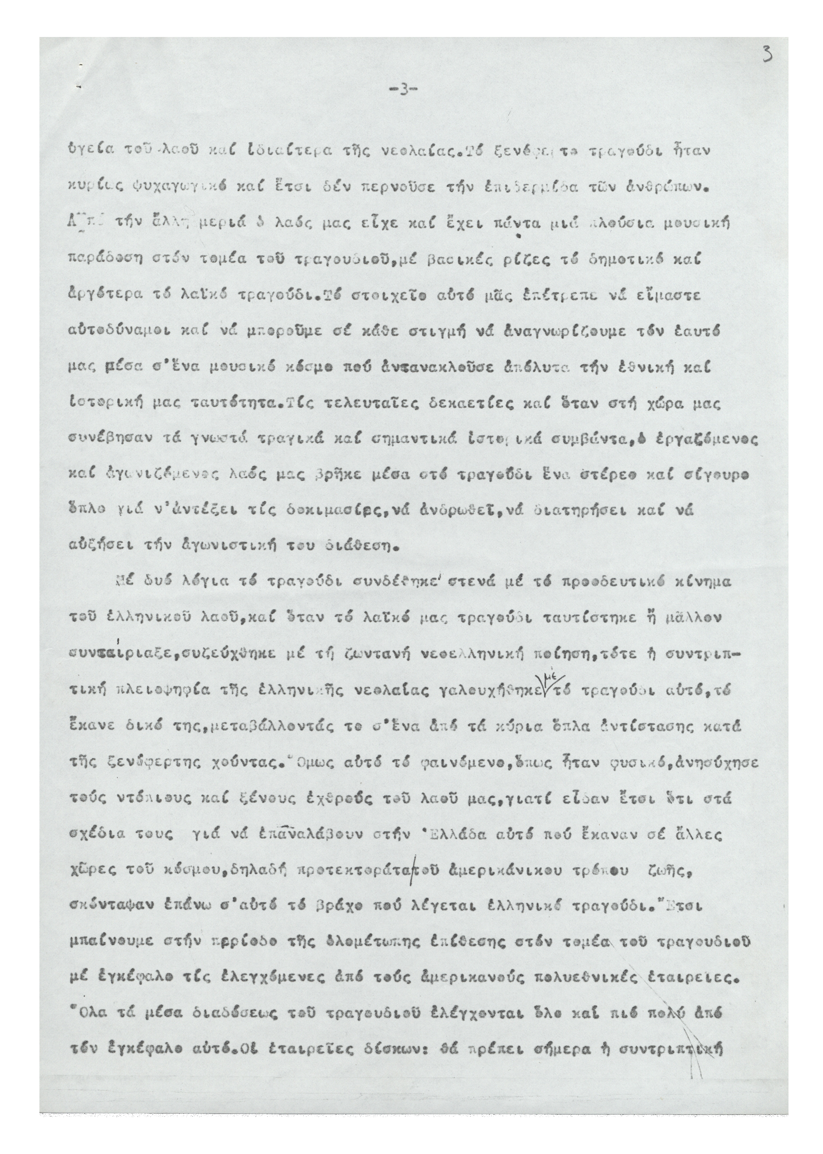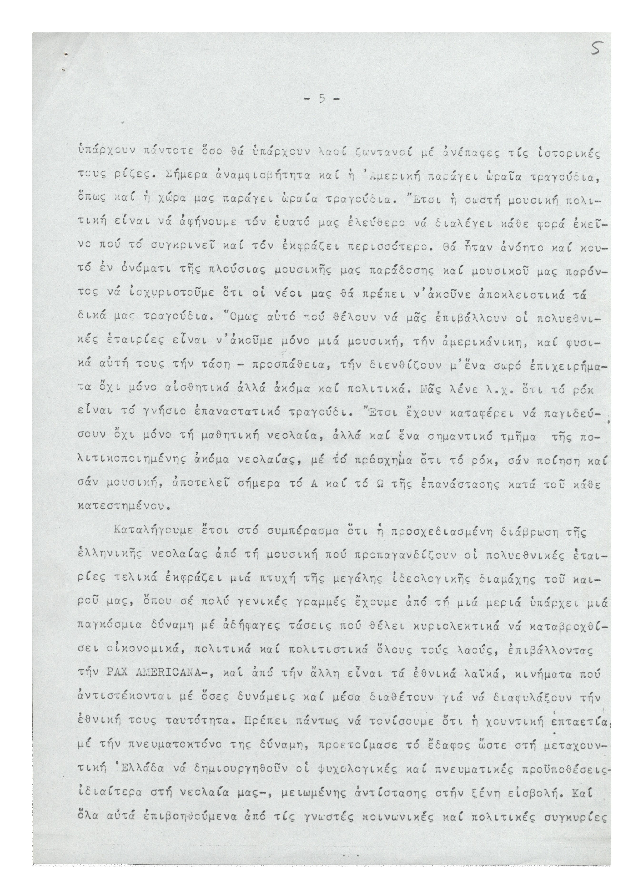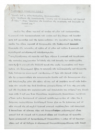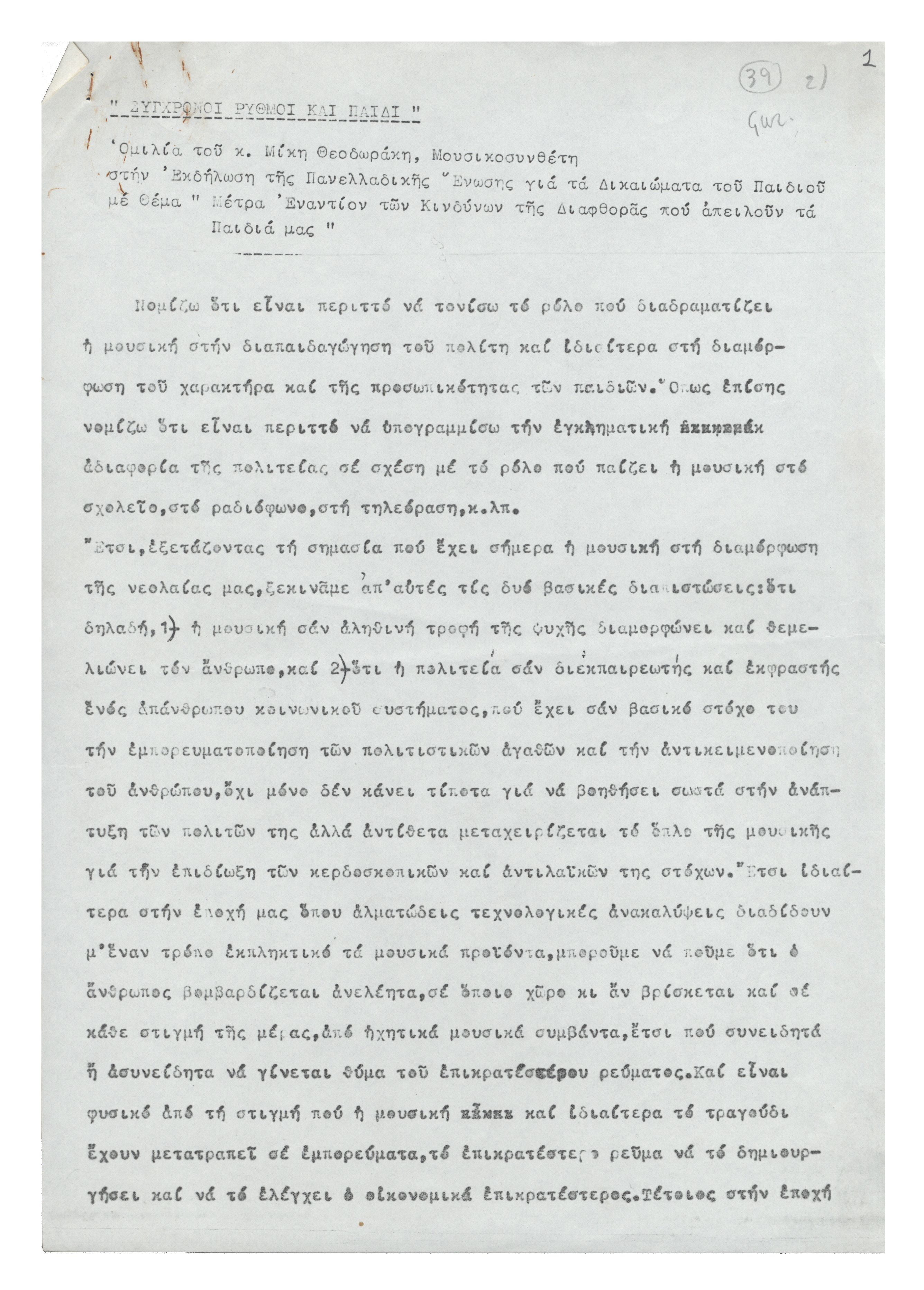Σύγχρονος ρυθμός και παιδί 12.02.2014 Δακτυλόγραφο κείμενο από την ομιλία του Μίκη Θεοδωράκη στην εκδήλωση της Πανελλαδικής Ένωσης για τα Δικαιώματα του Παιδιου που πραγματοποιήθηκε τη δεκαετία του 1980