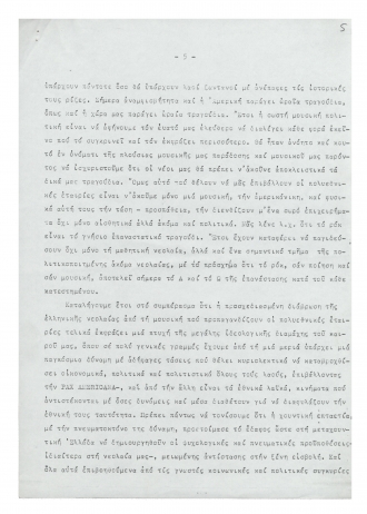 Δακτυλόγραφο κείμενο από την ομιλία του Μίκη Θεοδωράκη στην εκδήλωση της Πανελλαδικής Ένωσης για τα Δικαιώματα του Παιδιου που πραγματοποιήθηκε τη δεκαετία του 1980