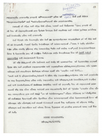 Δακτυλόγραφο κείμενο γραμμένο στη Μόσχα το 1978.