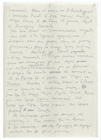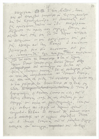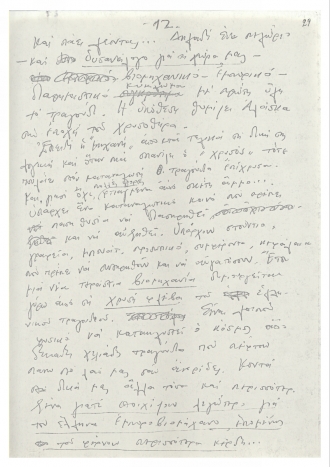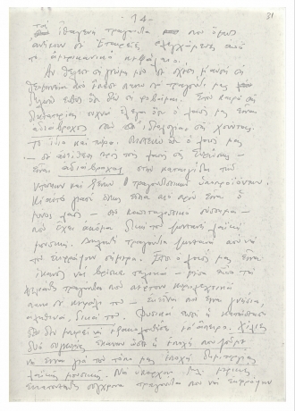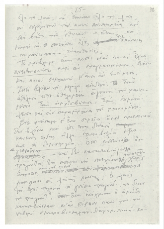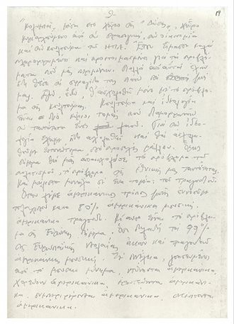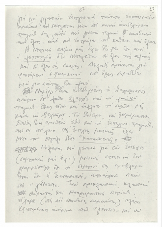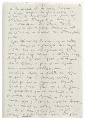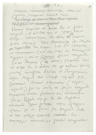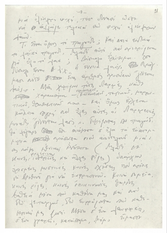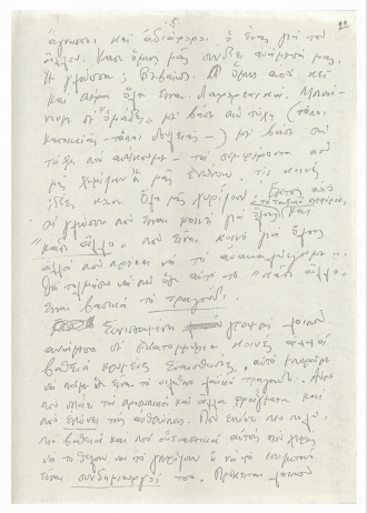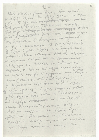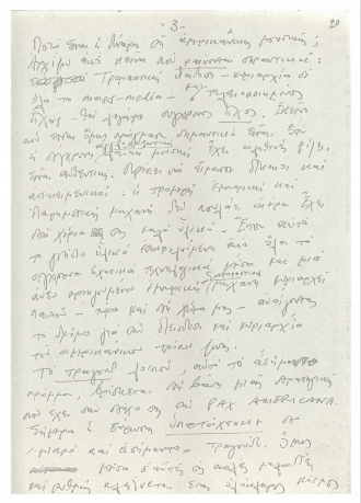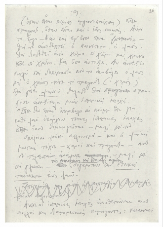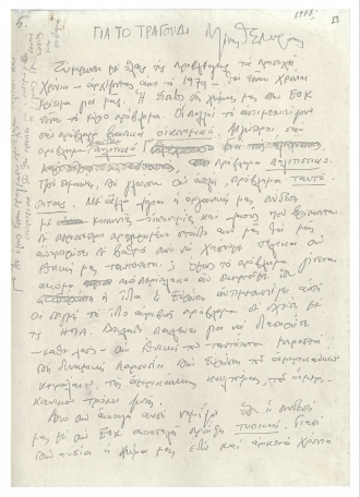 Χειρόγραφο κείμενο του Μίκη Θεοδωράκη με σκέψεις γύρω από το ελληνικό τραγούδι. Το κείμενο γράφτηκε τη δεκαετία του 1970