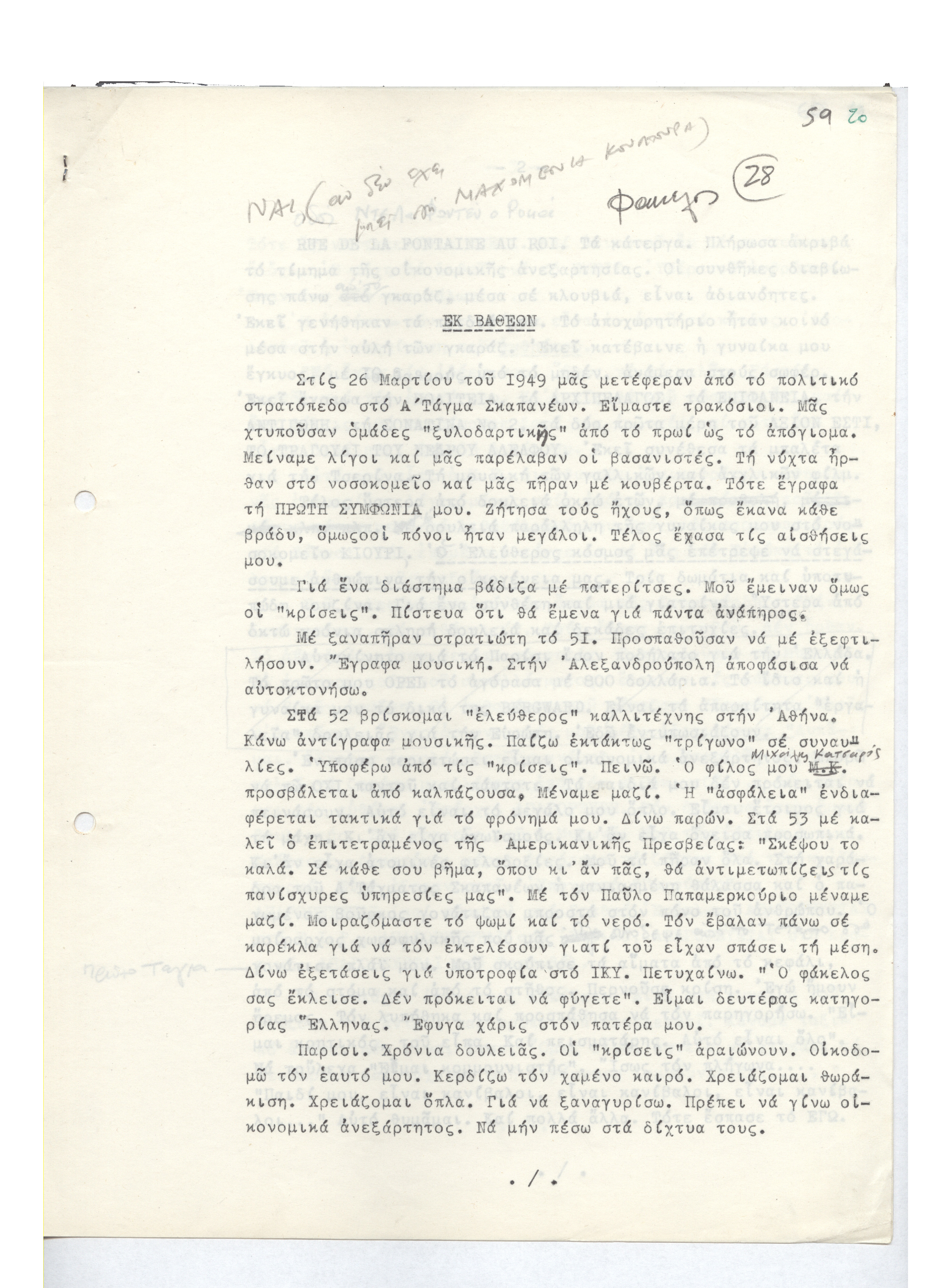 Δακτυλόγραφο αυτοβιογραφικό σημείωμα