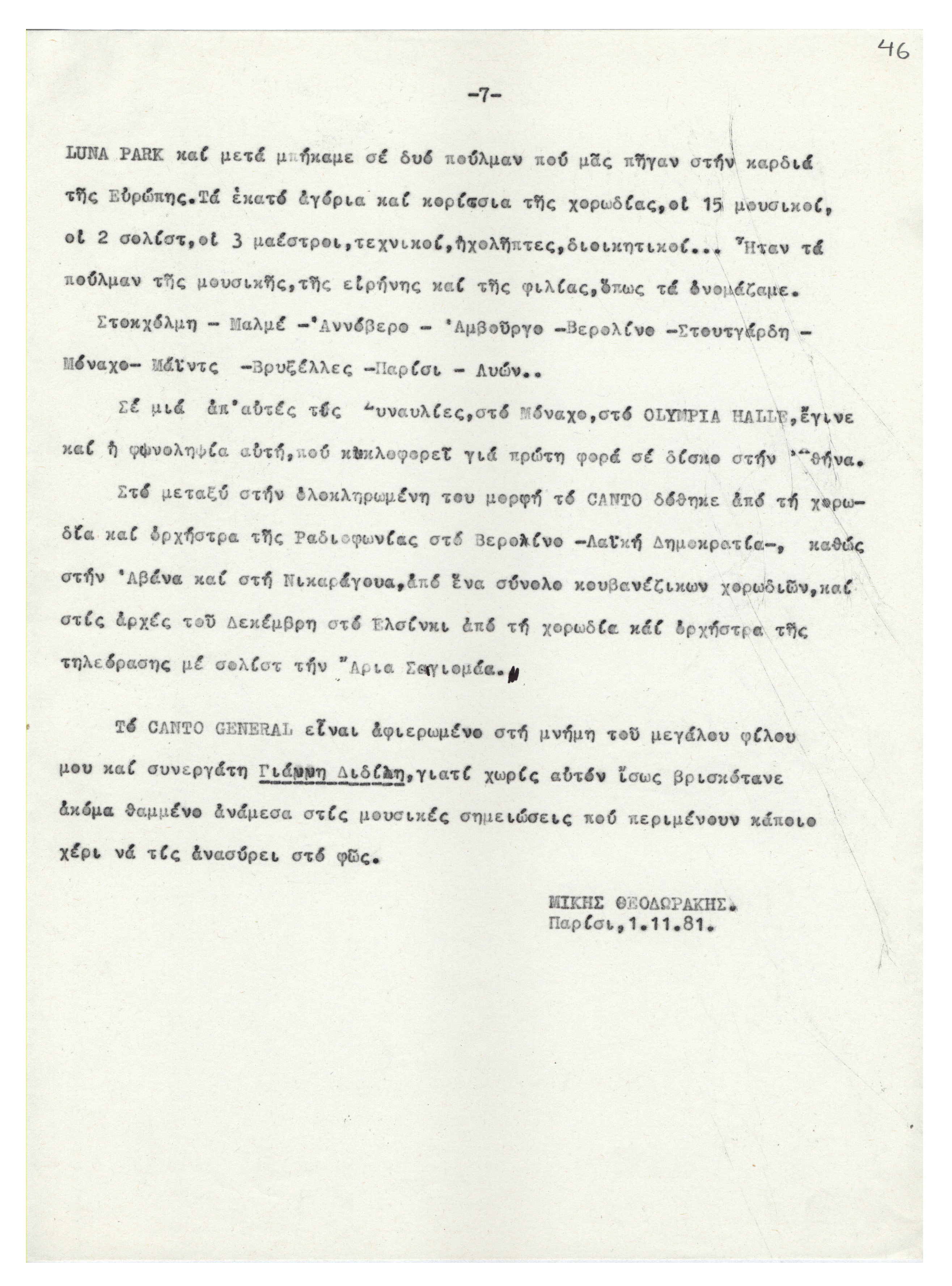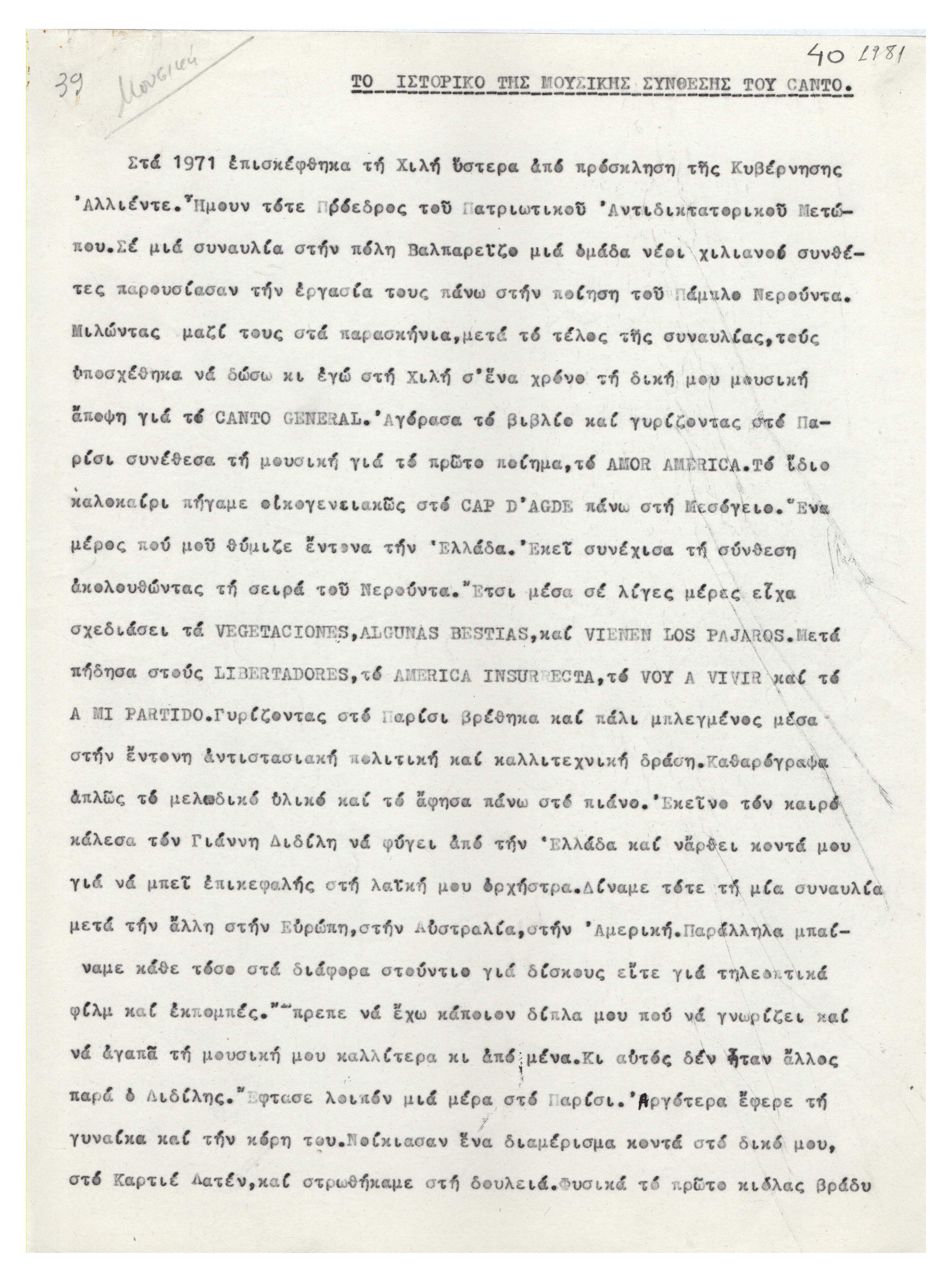 Το ιστορικό της σύνθεσης του Canto General 13.02.2014 Αναδρομή του Μίκη Θεοδωράκη στο πως γράφτηκε το έργο