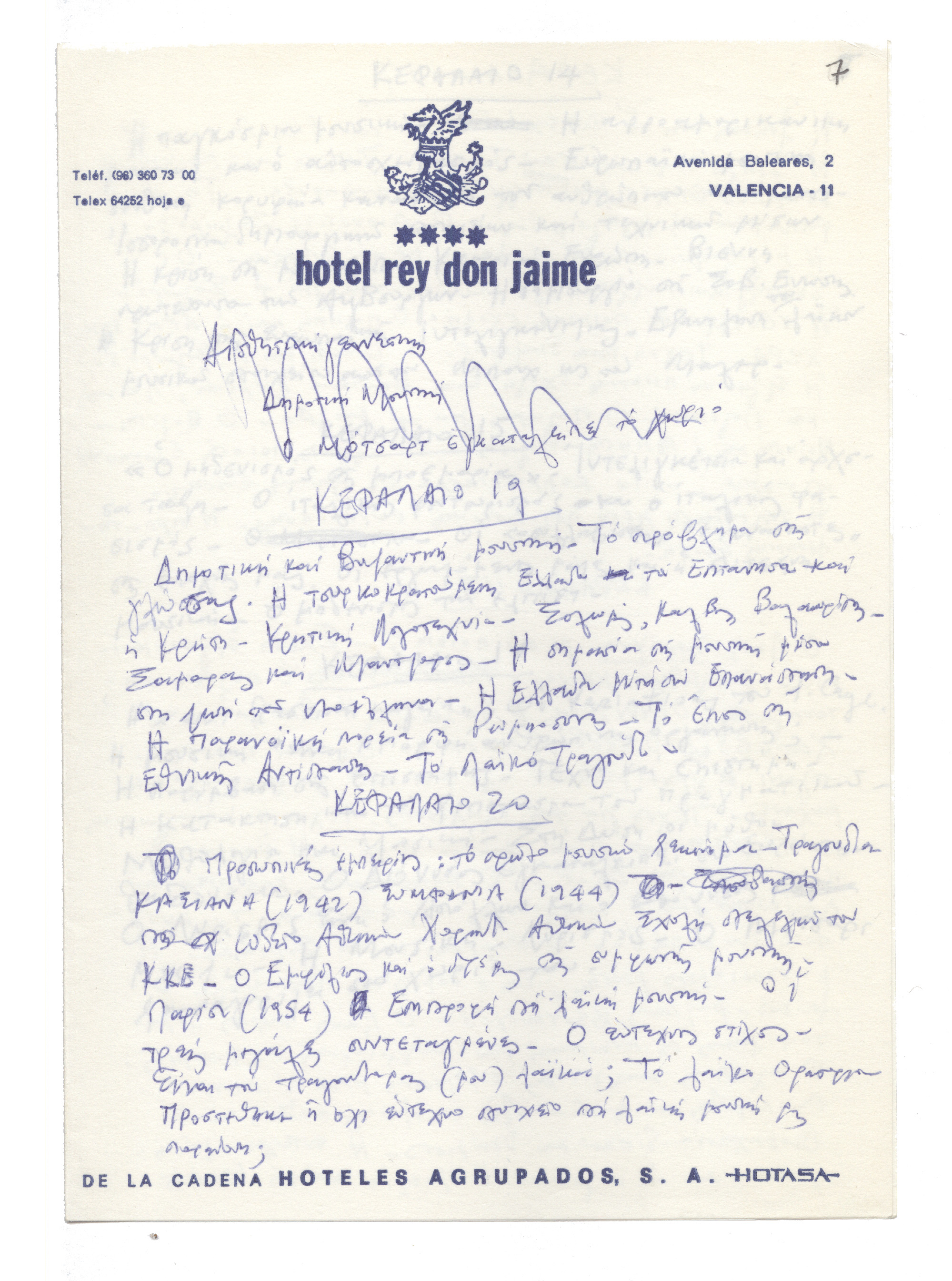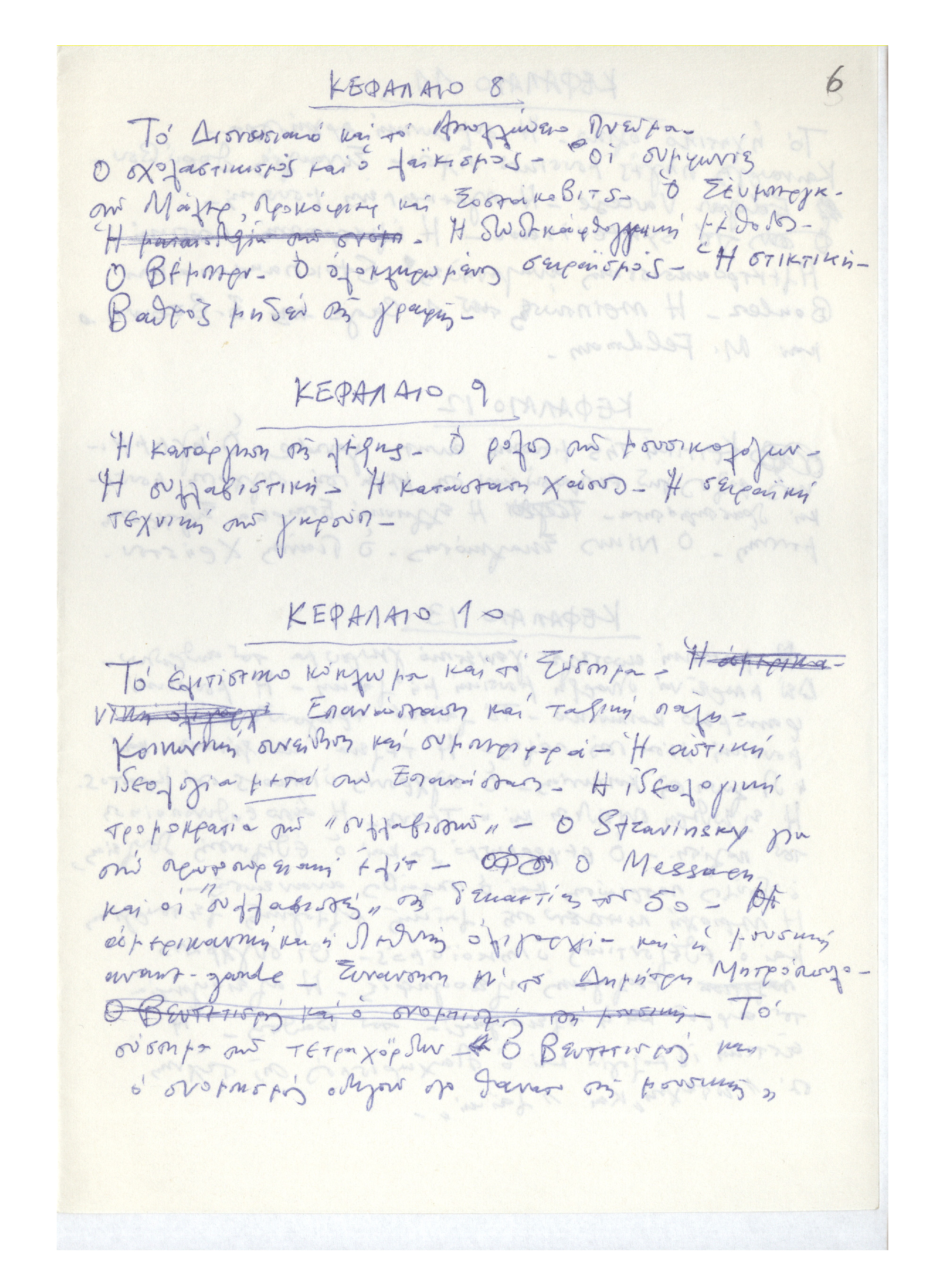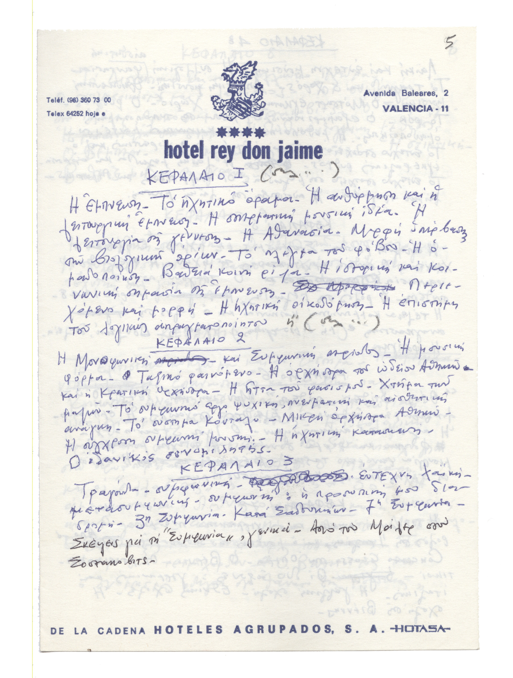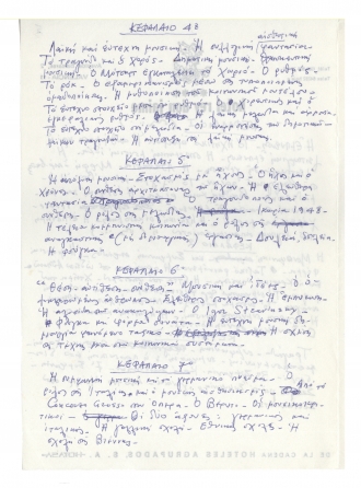 Χειρόγραφος ο πρόλογος του Μίκη Θεοδωράκη που ενσωματώθηκε στο ομώνυμο βιβλίο και μικρές περιλήψεις των κεφαλαίων που περιλαμβάνονται