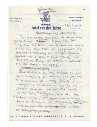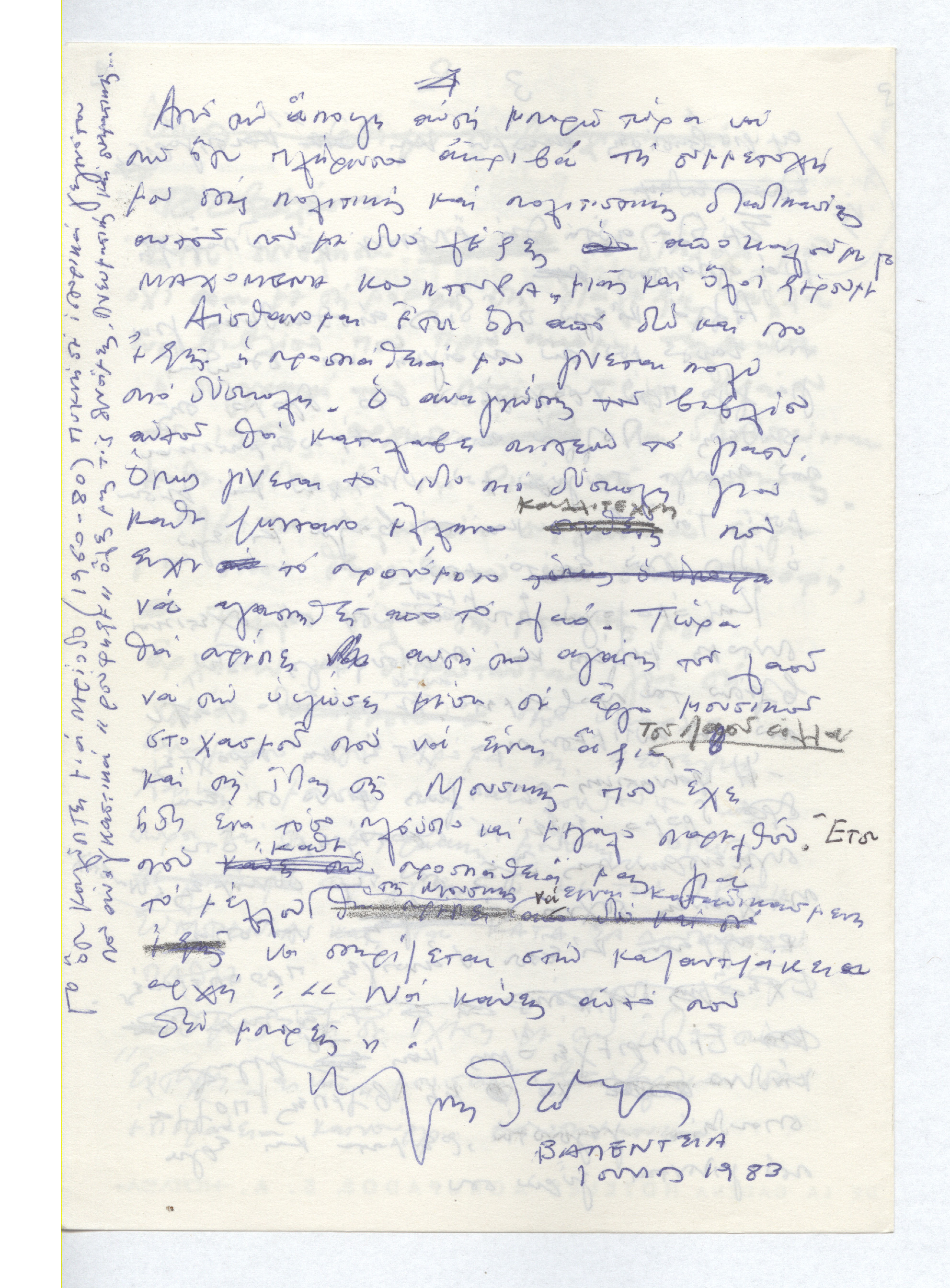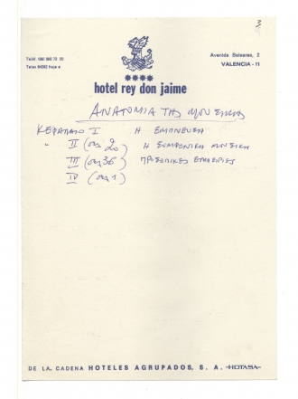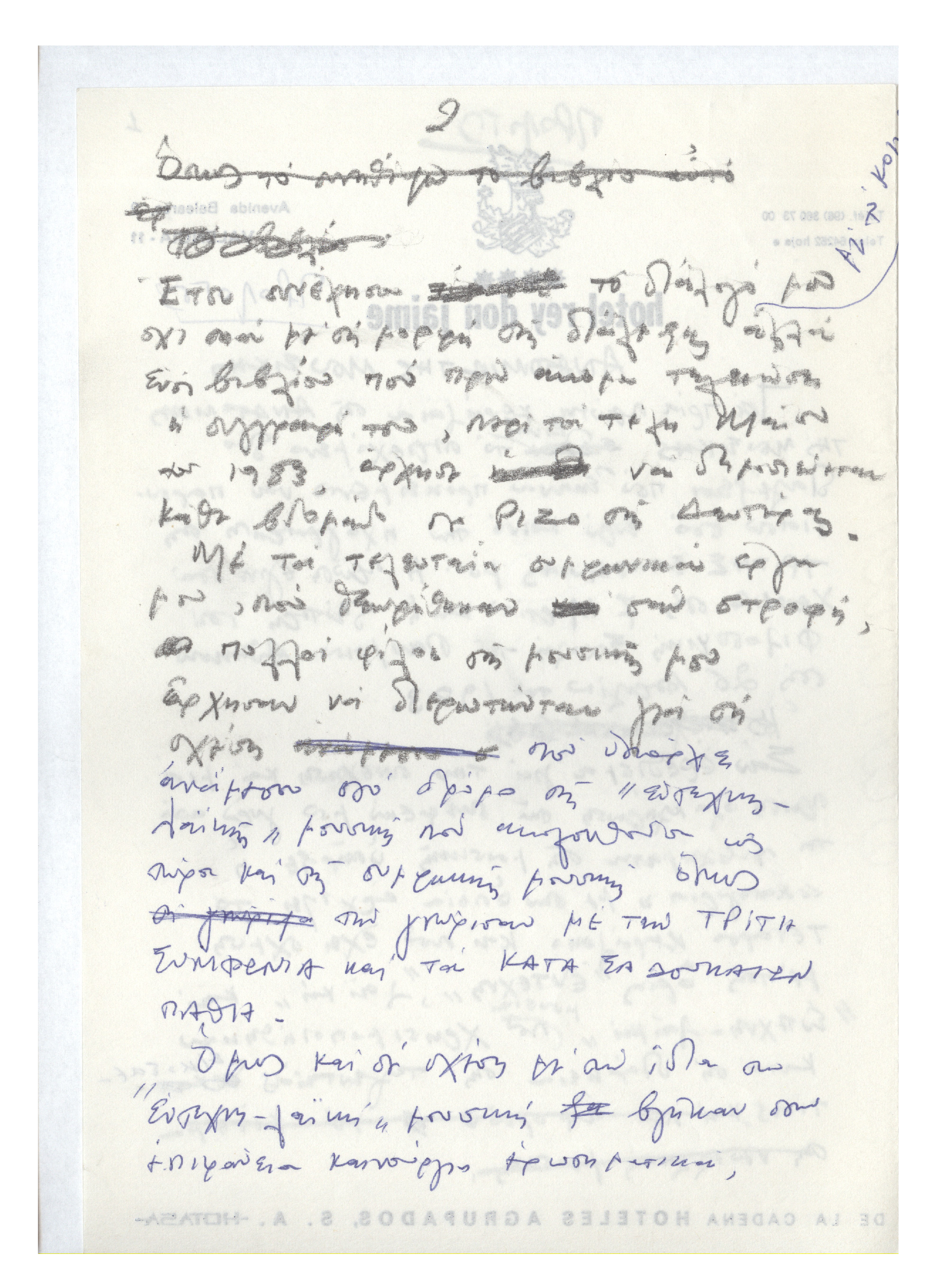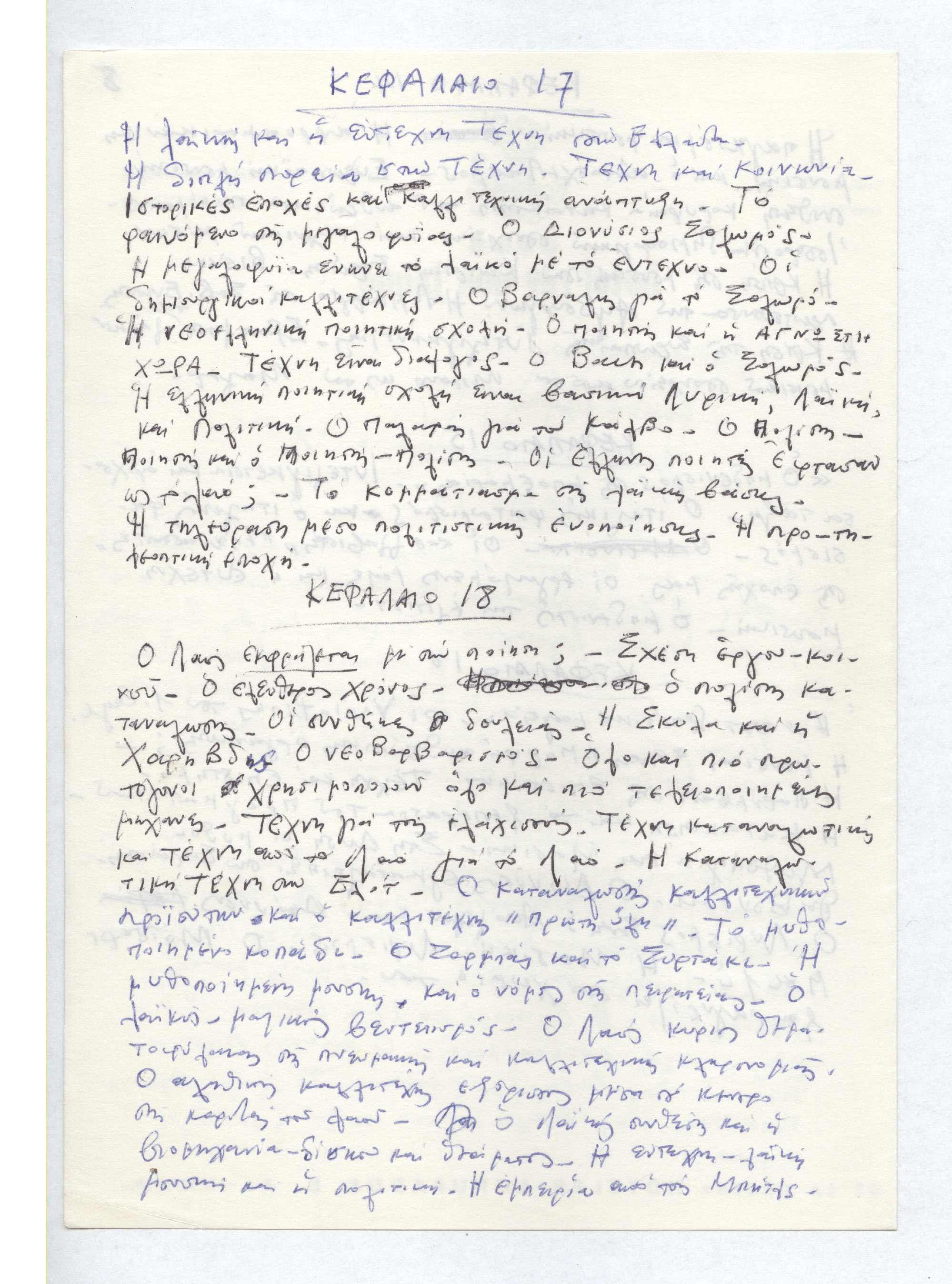 Χειρόγραφος ο πρόλογος του Μίκη Θεοδωράκη που ενσωματώθηκε στο ομώνυμο βιβλίο και μικρές περιλήψεις των κεφαλαίων που περιλαμβάνονται