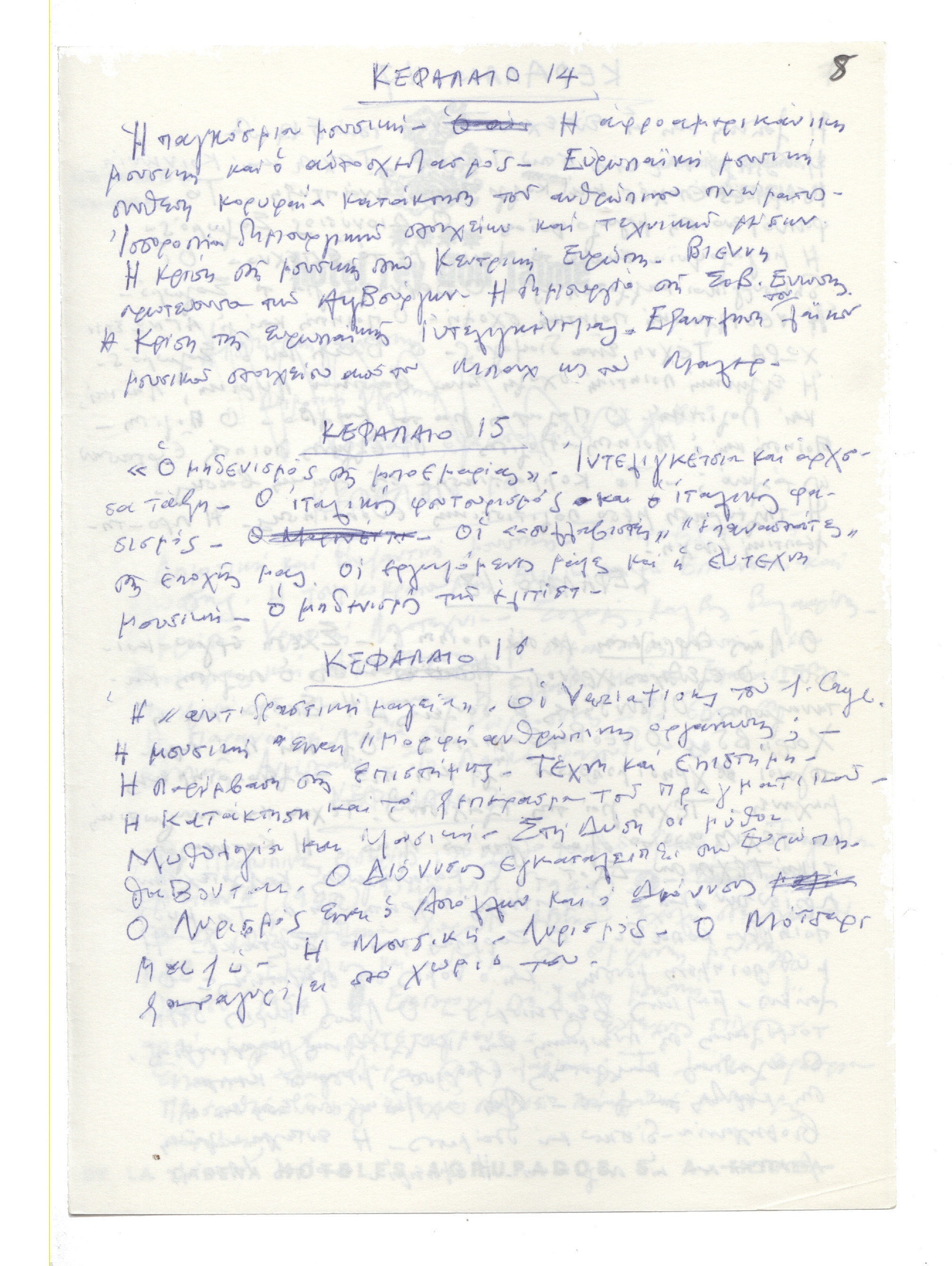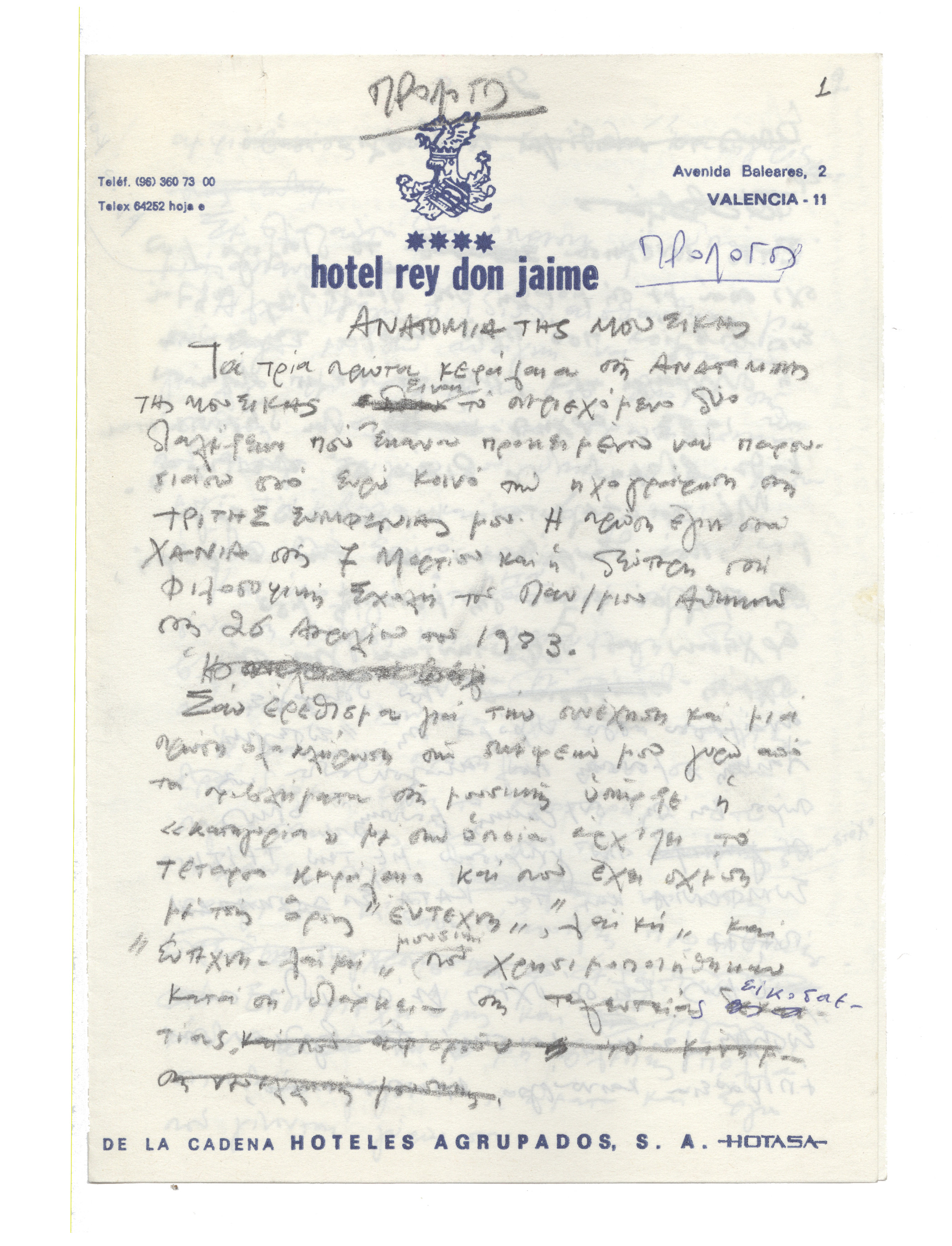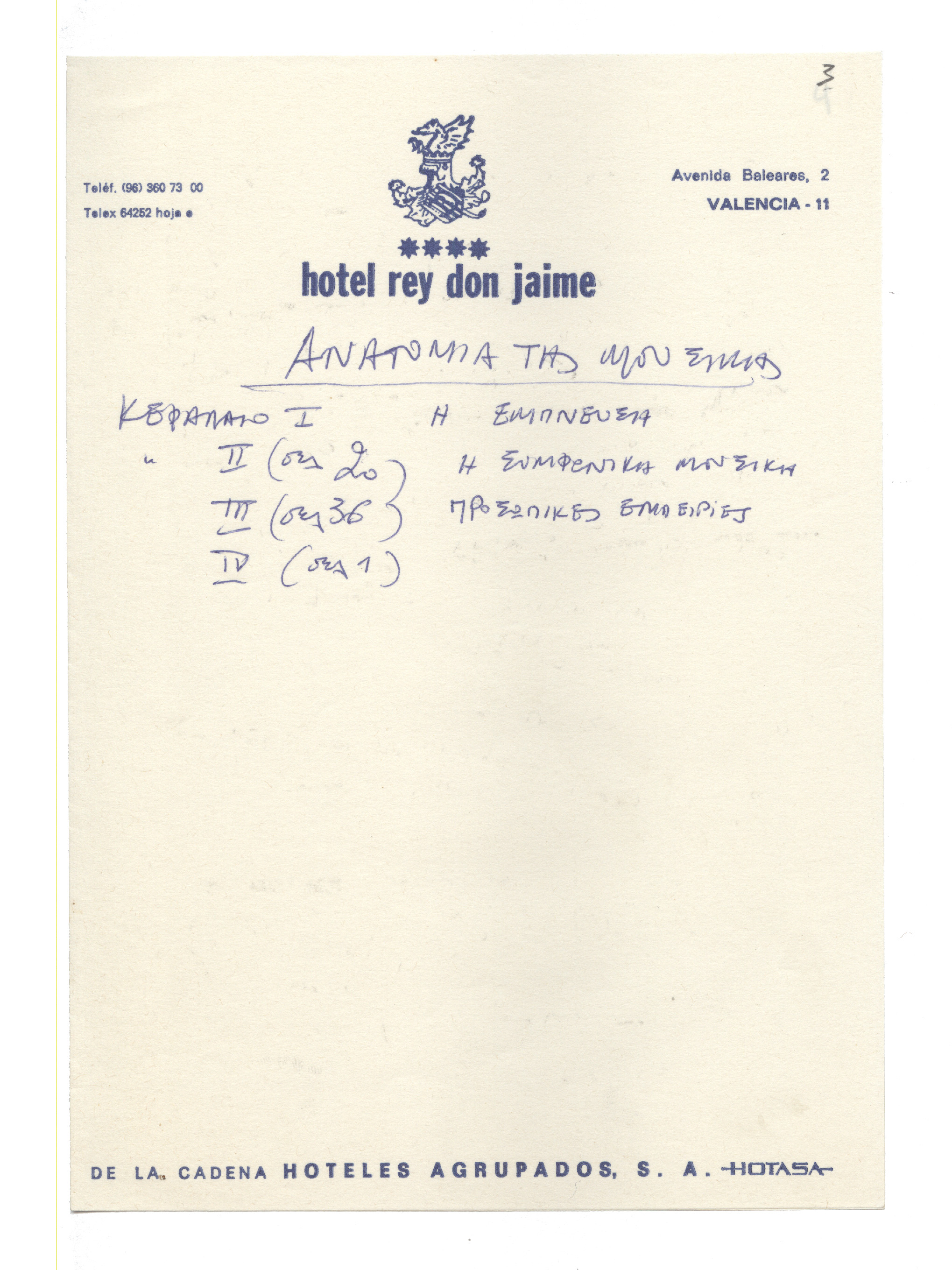 Ανατομία της μουσικής 13.02.2014 Χειρόγραφος ο πρόλογος του Μίκη Θεοδωράκη που ενσωματώθηκε στο ομώνυμο βιβλίο και μικρές περιλήψεις των κεφαλαίων που περιλαμβάνονται