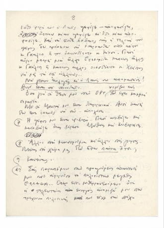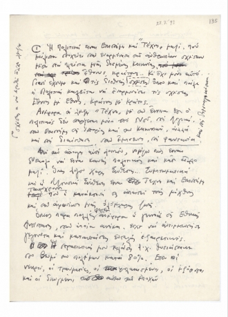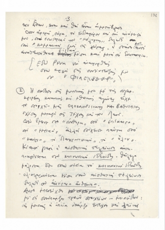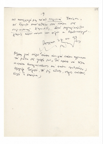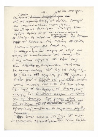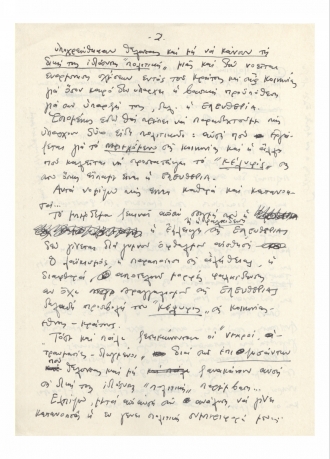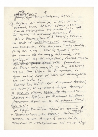 Κείμενο χειρόγραφο του Μίκη Θεοδωράκη όπου επιχειρείται η συνδέση της πολιτικής και η καλλιτεχνικής του υπόστασης