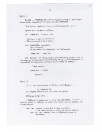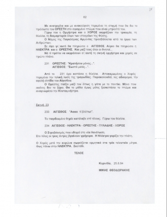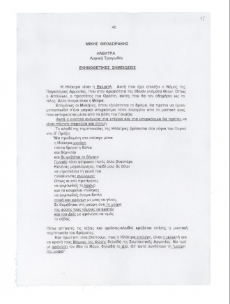 Ηλέκτρα σκηνοθετικές σημειώσεις 26.02.2014 Οδηγίες του Μίκη Θεοδωράκη που αφορούν τη σκηνοθεσία της όπερας