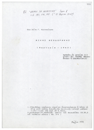 Μαρτυρία 1943 23.03.2014 Κείμενο του Βασιλείου Κουτσούγερα που ενσωματώθηκε στους "Δρόμους του Αρχάγγελου"