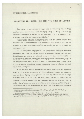 Προσέγγιση στο συγγραφικό έργο του Μίκη Θεοδωράκη