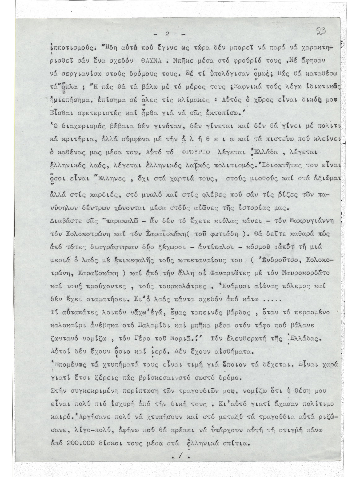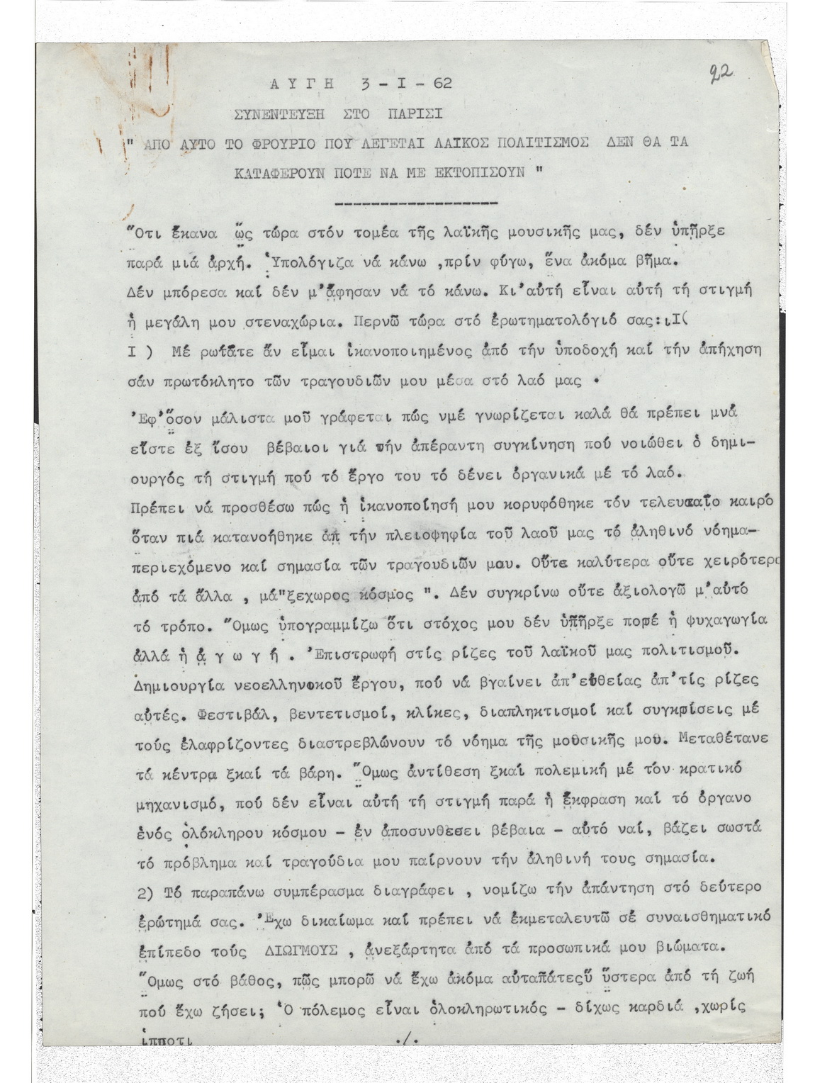 Από αυτό το φρούριο που λέγεται Λαϊκός Πολιτισμός δεν θα καταφέρουν να με εκτοπίσουν ποτέ
