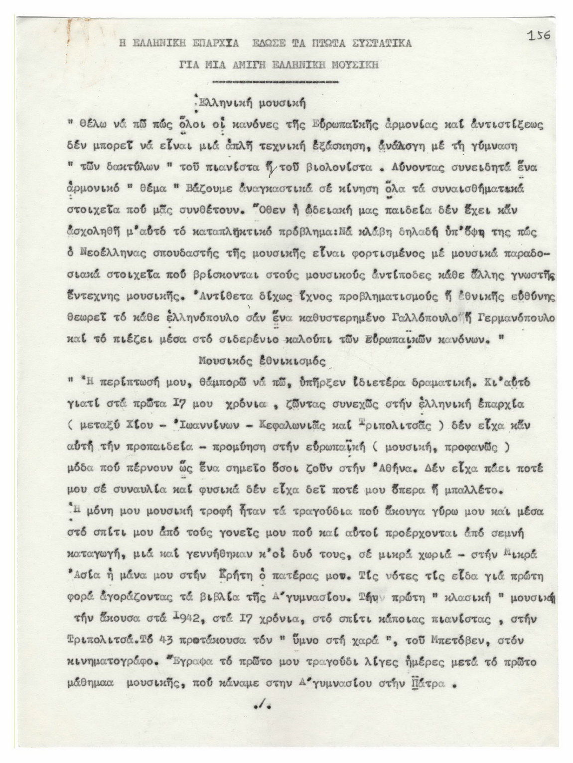 Η ελληνική επαρχία έδωσε τα πρώτα συστατικά για μια αμιγή ελληνική μουσική