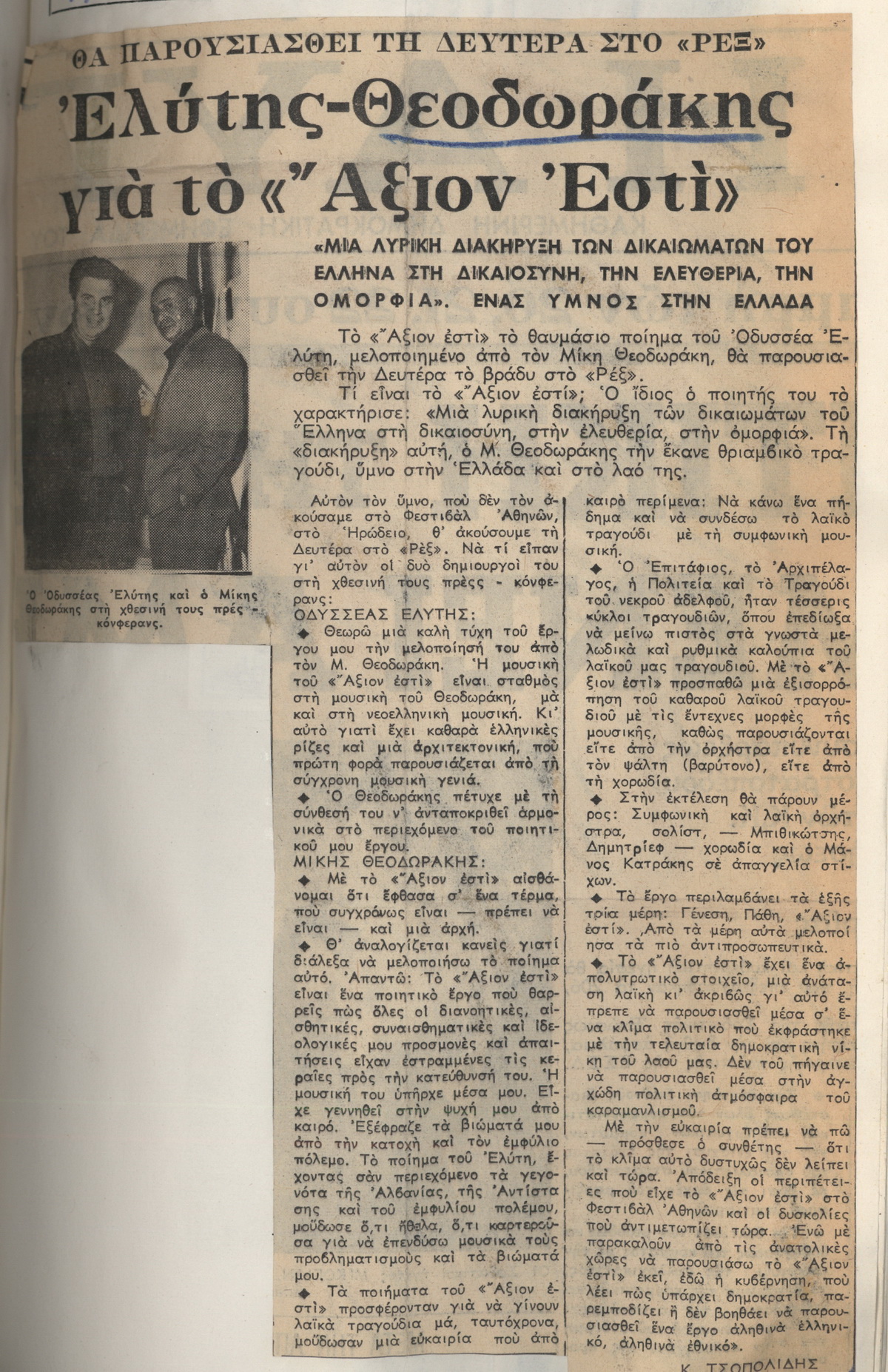 Ελύτης-Θεοδωράκης για το "Άξιον Εστί"
