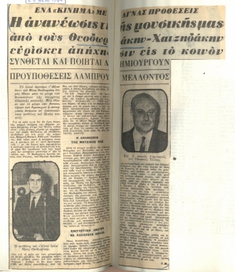 Η ανανέωσις της μουσικής μας από τους Θεοδωράκην-Χατζηδάκην ευρίσκει απήχηση εις το κοινόν 05.11.2014 ΔΗΜΟΣΙΕΥΣΗ ΠΡΩΤΟΤΥΠΟΥ: 26/12/1964