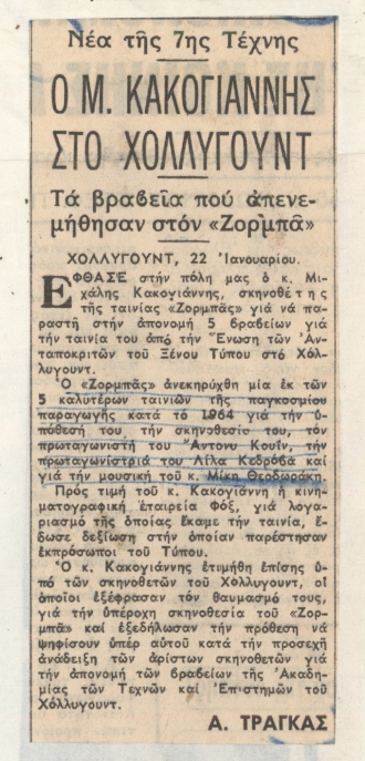 Ο Μιχ. Κακογιάννης στο Χολλυγουντ