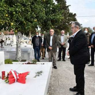 Λουλούδια στον τάφο του Μίκη Θεοδωράκη στο κοιμητήριο του Γαλατά Χανίων κατέθεσε το πρωί ο Γραμματέας της ΚΕ του ΚΚΕ Δημήτρης Κουτσούμπας.