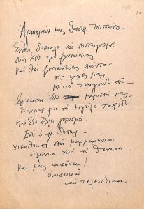 Επισκέφθηκα την έκθεση «Ο γαλαξίας μου: Μίκης Θεοδωράκης» τη συννεφιασμένη μέρα της κηδείας του συνθέτη. Καθώς περιδιάβαινα τις ενότητές της, ολομόναχος (λόγω της πρωινής ώρας μάλλον), σκέφτηκα στιγμιαία πως αυτός ο χώρος ενδείκνυται για ένα διαφορετικό «λαϊκό προσκύνημα» όχι ως αποχαιρετισμό, αλλά ως επιβεβαίωση της παρουσίας του Μίκη τώρα και για πάντα, εδώ και παντού. Πάνω ακριβώς σε αυτήν τη σκέψη, ο ίδιος ο Μίκης ήρθε κατά κάποιον τρόπο να συμφωνήσει μαζί μου, καθώς το μάτι μου έπεσε πάνω σε ένα χειρόγραφο σημείωμα μιας προθήκης: «Είναι δύσκολο να πιστέψουμε πως εσύ που ζωντάνευες και θα ζωντανεύεις τις ψυχές μας με τα τραγούδια σου βρίσκεσαι εδώ μπροστά μας έτοιμος για το μεγάλο ταξίδι…». Ήταν το προσχέδιο του συνθέτη για τον επικήδειο ενός άλλου μεγάλου «παρόντα», του Βασίλη Τσιτσάνη. Αυτό το «ζωντάνευες και θα ζωντανεύεις τις ψυχές μας» είναι ένα σπανιότατο προνόμιο και όποιος το διαθέτει είναι σχεδόν σαν να κατέχει το συνθηματικό για τη λέσχη της αθανασίας. Και ουδείς διαφωνεί πως ο Μίκης Θεοδωράκης είναι εκλεκτό μέλος αυτής της λέσχης.